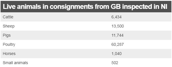 The only checks that would, under EU law, have to take place on entry into Northern Ireland would be those on food and animals. And that already happens to some extent. Consignments of live animals are checked for health and animal welfare standards at the port of Larne on arrival from Great Britain.